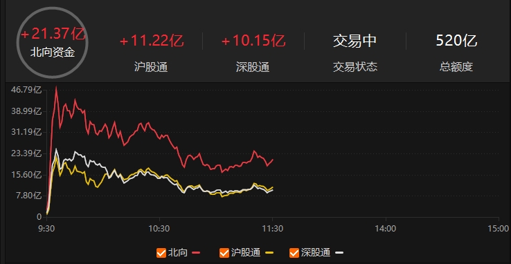 上证报中国证券网讯截至2月7日上午收盘,北向资金净买入21.37亿元。其中,沪股通渠道买入11.22亿元证券公司炒股吗,深股通渠道买入10.15亿元。